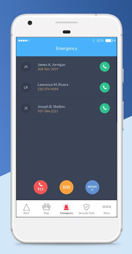 Кнопка «Call 911» и кнопку «SOS», которая называет 24/7 Shepherd Shield Dispatch Center (находится в США). Пользователь должен иметь сотовую связь, чтобы создать такой вызов.