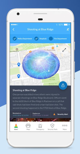 в чрезвычайной ситуации наихудших случаев, таких как активное оповещение стрелка, приложение будет выдавать предупреждение о предупреждении.