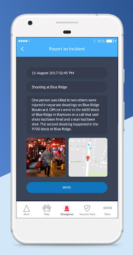 пользователь может предварительно -Отайте их «5 лучших пятен безопасности», такие как школа, офисное здание и т. Д., И если предупреждение произойдет в одном из этих пятен, приложение Shapherd Shield пользователь автоматически отправит уведомление.