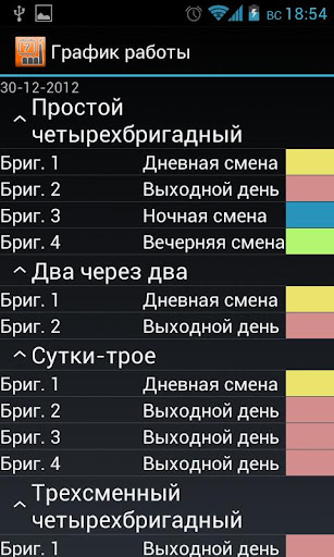 График Работы - лучший календарь смен с будильником, помогающий составлять и просматривать рабочие смены на любой период времени, показывая графики в удобной многобригадной форме.