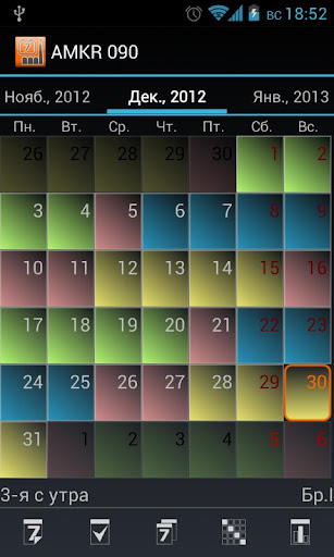 • Выбор действия по длинному тапу на ячейке календаря;