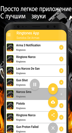 Это приложение для мобильного телефона со звуками настоящего оружия, чтобы загрузить все лучшие бесплатные рингтоны оружия Музыка наркоманов для мелодий звонков, звуки радио наркоманов, мелодии оружия, мелодии голосов наркоманов для бесплатного мобильного телефона и марш рингтонов, это Приложение просто в использовании, наслаждайтесь любимым ритмом бесплатных рингтонов оружия и громкими звуками для телефона, есть множество мелодий для мобильного телефона, звуки настоящего оружия для мобильного. выберите звуки своего оружия для мобильного телефона с новыми бесплатными мелодиями, песни северных наркоманов, звуки настоящего оружия для сотового телефона, каждый из которых высокого качества, можно услышать, загрузить и установить тон по умолчанию с сильными тонами. настоящее оружие больше не ищет в интернет-мелодиях для звонков, потому что теперь у вас есть их здесь, чтобы загрузить и настроить в качестве сигналов действий для сотовых телефонов, теперь у вас есть бесплатные звуковые сигналы для бесплатных звуковых сигналов для мобильных телефонов, мелодии для уведомлений. Бесплатные звуки действий для мобильных скачать сейчас мелодии оружия и винтовки звуки оружия для уведомлений о наркотиках - лучший вариант для вас, так как это сборник мелодий и песен признанных испанских колумбийских наркоторговцев бесплатно.