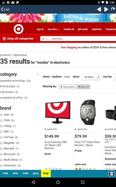 Электроника в том числе BestBuy, Dell Computer, Radio Shack, Apple, Brookstone и Newegg.