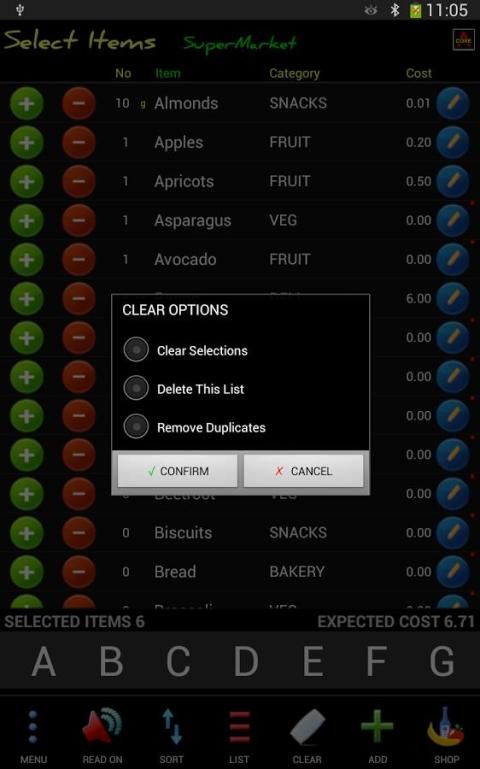 Эта программа в первую очередь предназначен для создания пользовательских списков покупок. Это может быть достигнуто быстро и легко. Просто используйте (+) или (-) для выбора количества, нажать кнопку и вуаля появляется список покупок! Он устраняет время тратить и хлопот писать новые списки каждую неделю. Добавление, изменение и выбора пунктов в любое время. Никогда не забывайте, элемент или удивляться стоимости снова. Данный продукт в комплекте со многими интересными возможностями в том числе зачитал режиме, распознавание голоса, возможностей по электронной почте, функции сортировки, импортировать и экспортировать списки, графики, Цена и общая калькуляция расходов.