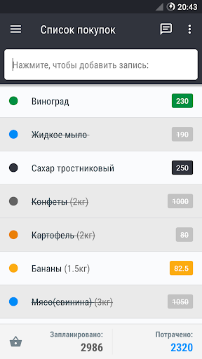 Простым нажатием на элемент списка Вы вычеркиваете купленный продукт.