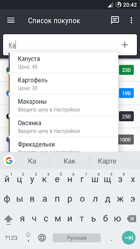 - Добавлена возможность добавить цену на главном экране - Хлеб = 50