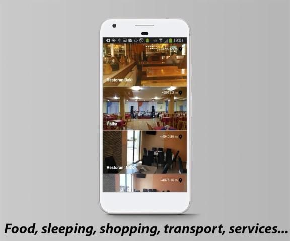 - поиск и найти близлежащие места: рестораны, пекарни, услуги и т.д.