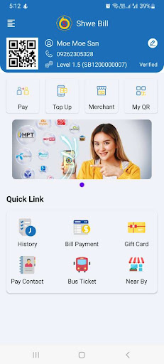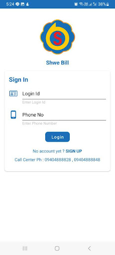 Shwe Bill App может приобрести мобильную перезарядку, платеж счета Skynet, Ananda, Myanmarnet, Lalakyi и т. Д.