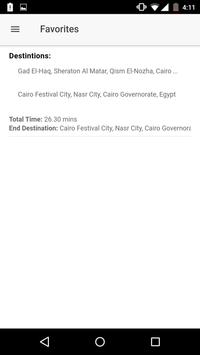 Based on google maps, this application will give the user the distance and time alternatives after selection of the final destination.