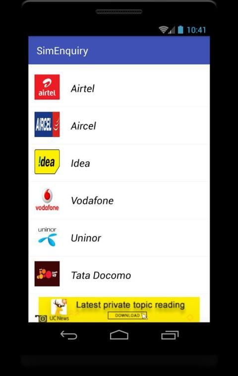 Sim Дознание приложение Numbers помогает индийским пользователям предоплаченных телекоммуникационных найти число конкретных операций, такие как перезарядка, Main, сообщение, Net запрос баланса, найти собственный номер и уход клиентов номер. В настоящее время приложение поддерживает оператор связи, как Airtel, Aircel, идея, Vodafone, Uninor, Tat Docome, BSNL и Reliance.