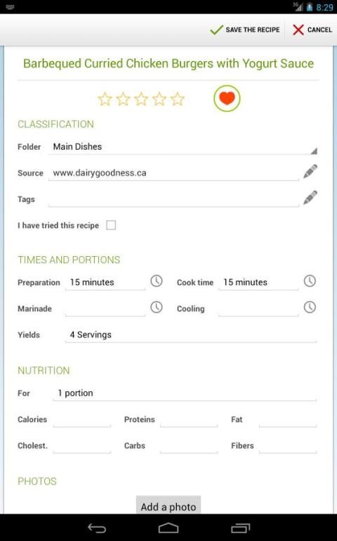 - Используйте службы синхронизации, чтобы сохранить вашу коллекцию рецептов в курсе всех ваших Android устройств и на вашем ПК Windows (PC версии продается отдельно.)