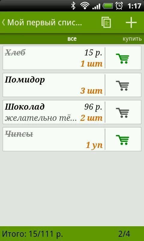 - учёт цен (в каждом списке покупок возможно вкл/откл учёт цен)