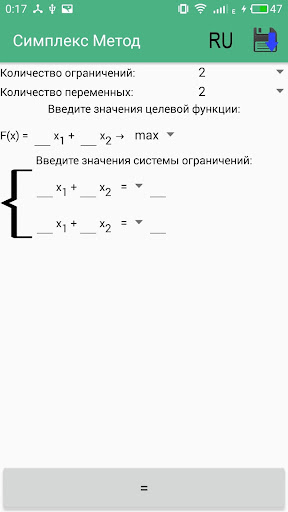 * Увеличено количество уравнений и неизвестных до 20.