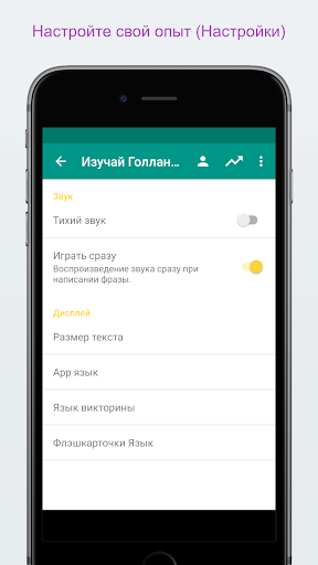 * Настройка викторины и флэшкарт на голландский язык --> русский язык, русский язык --> голландский язык