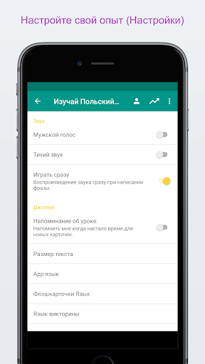 * Настройка викторины и флэшкарт на Польский язык --> русский язык, русский язык --> Польский язык