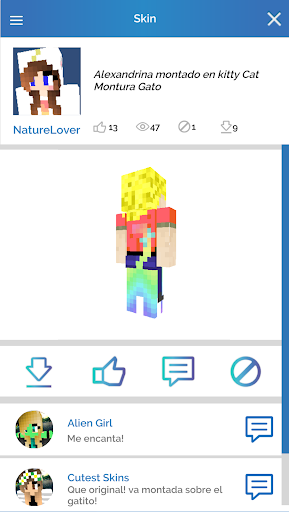 Он имеет онлайн-каталог скинов, где вы можете искать среди сотен шкур, которые пользователи загружают каждый день. Вы можете поделиться своими творениями с другими пользователями, оставлять свои комментарии и поздравления говорю вам, если вам нравится.