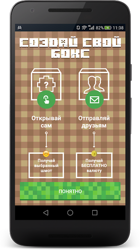 Выбирай скины из коллекции, которые тебе понравились, помещай их в боксы и обменивайся боксами с друзьями. Получай крутые скины от друзей и зарабатывай с боксов, которые открыли твои друзья.
