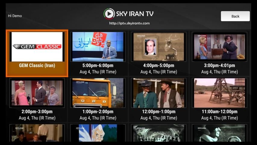 Некоторые из каналов включены: Manoto 1, Andisheh, Асре Эмруз телевизор, GEM телевизор, GEM Болливуд, GEM Classic, GEM Junior, GEM курда, GEM Life, GEM One TV, GEM оникс, река GEM, GEM Rubix, GEM Series, GEM ST, GEM подросток, GAM TV, GAM CLASSIC, Иран TV Network, IRIB 1, IRIB 2, IRIB 4, 5 IRIB, IRIB Amoozesh, IRIB Mostanad, IRIB Насим, IRIB Ofogh, IRIB Pooya, IRIB Саламат, IRINN