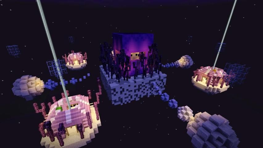 На большинстве карт SkyWars много командных блоков и редстоун схем, которые автоматизируют процесс игры Minecraft PE. Что бы начать играть, вы должны встать на пластину или нажать рычаг, чтобы оказаться на одном из островов.