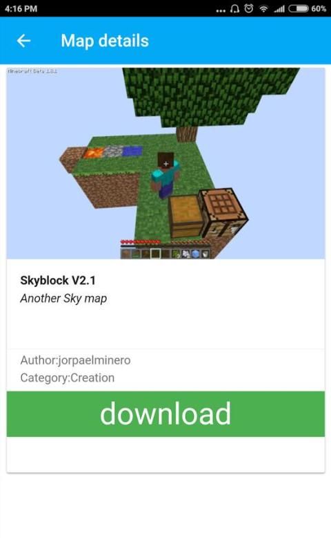 Skyblock карта Minecraft для mcpe является одним из самых популярных minemaps. Один человек, один остров и одно дерево. Вы готовы, чтобы выжить с картами выживания skyblock для Minecraft ре? Миллионы людей играют с выживаемостью карты Minecraft каждый день. В чем секрет популярности? Четкая идея, простое управление, открытый мир и Minecraft пвп арена для игр стать ключом к успеху.
