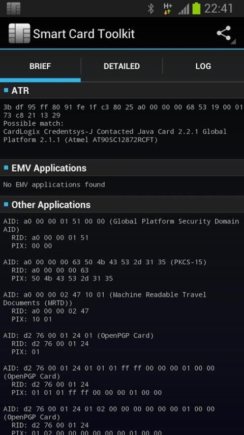 Currently only EMV ("Chip and PIN") cards are supported, but the application will attempt to discover known smart card AIDs for any other card type.