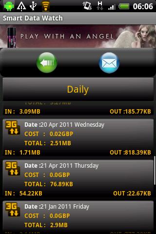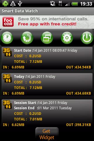 Smart Data WatchWhile All Network Companies restrict data usage , do not let your data usage go high,with Smart Data Watch Pro, you can easily,follow up , start session and check your daily data usage and total usage,log up to 100 days,convert your data usage to money , calculate how much a MB costs you, Main FeaturesWIDGETSession Data Usage MonitoringPRO ONLYCheck Your total usageDaily Usage Session UsageDaily log up 100 daysConvert your data usage to money Calculate how much you pay per 1 MB.Add your local currency User Friendly InterfaceLarge Screen Support TabletsWorks on Samsung Galaxy TabBattery Efficient Unlike of its kinds , this application does not run a continuous background process to track your data usage widget updates are periodically,You can refresh widget bypressing the green refresh buttonWIDGET PRO ONLYOnce the app is off ,it does not run any background process Start Stop session daily ,weekly ,monthlyReset,Delete Daily LogsAdjust Refresh speedAlert option
