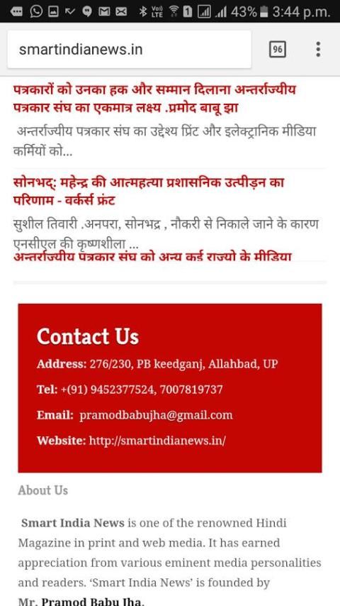 Когда Индия Nyjh зарегистрированного документа правительства Индии. Который публикует новости Ilhabad. Редактор и издатель Pramod Баба Дж. И бумага Свинец Индии ассоциация издателей - является членом LIPA.