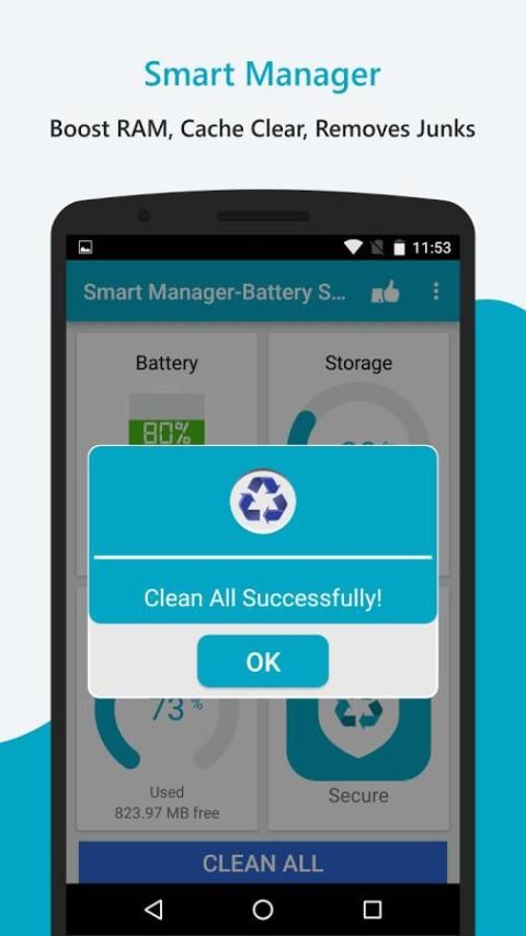 Умный менеджер является лучшим инструментом барана очиститель для оптимизации производительности оперативной памяти, ускорения, утрамбовать чистый кэш, очистить память, полностью и тщательно убить фоновое приложение. Он будет решать все барана темы & ошибки при нажатии чистой барана.