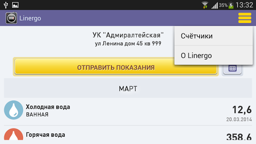 Отправляйте показания приборов учета в управляющие компании, ТСЖ, подключенные к сервису сбора показаний Linergo.