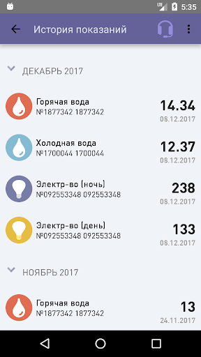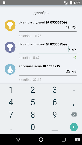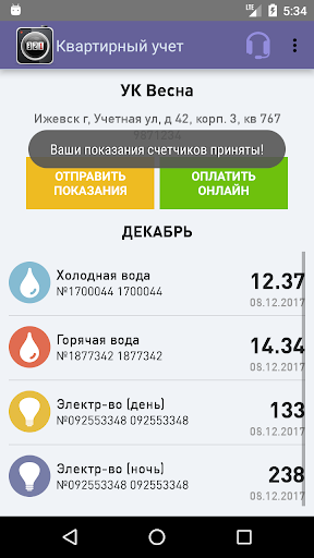 Вы можете отправлять показания по воде, электричеству, теплу и газу. Приложение хранит историю показаний, имеет встроенный фонарик.