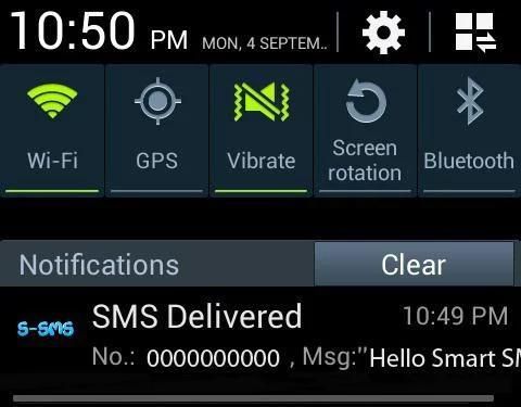 3) An instant notification is sent to the sender's mobile (who is sending this sms).