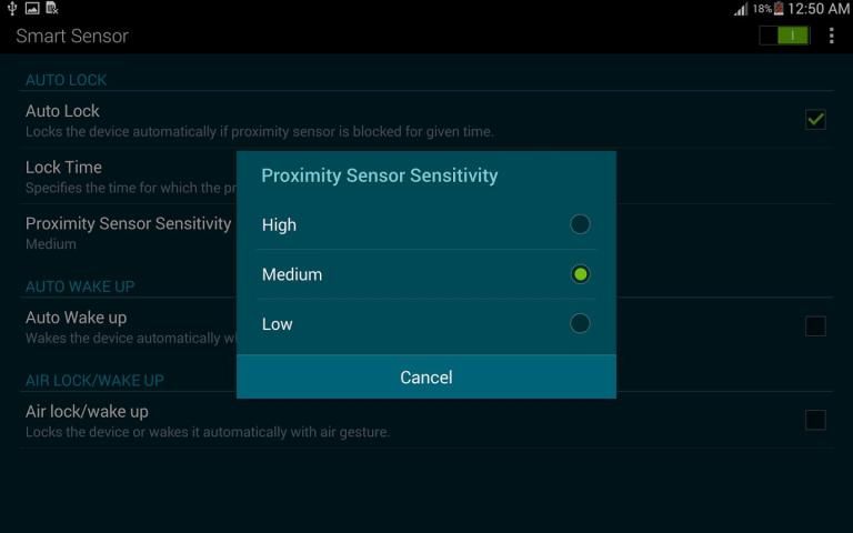 2 Пользователь также может изменить senstivity бесконтактного датчика. Низкий senstivity означает, что устройство будет заблокировано, только если датчик блокировки объекта близость почти касаясь устройства.
