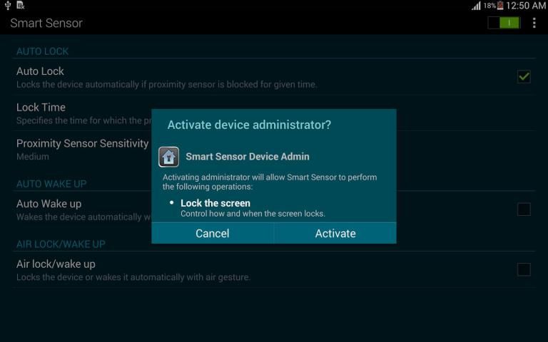 Применение необходимо разрешение администратора устройства автоматической блокировки экрана. Пожалуйста, включите политику в ответ на запрос от применения. Это один процесс время после установки приложения, если пользователь не удаляет политику от администраторов устройств. Обратите внимание, что приложение не будет работать, если администратор устройство не активировано для применения.