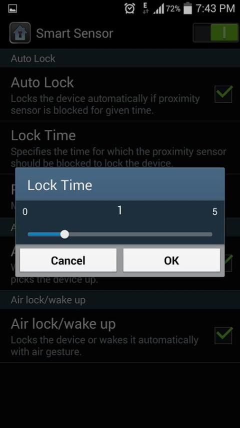 1 Время блокировки: Пользователь может изменить блокировки время пользователь \ 'ы устройства после датчик приближения блокируется. Значение по умолчанию составляет 1 секунду. Максимальное значение может быть 10 секунд.