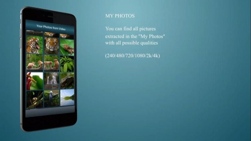 ★ Извлечение, с одним щелчком мыши вы можете захватить фотографии из видео (все видео качества поддерживается 240/480/720/1080 / 2K / 4K), вы можете использовать их для вашего будущего проекта слайд-шоу