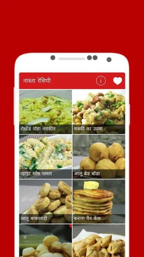Top Закуски Рецепты на хинди . его также называют Наста Рецепты . Закуски Рецепты приложение описывает много закуски, завтрака или НАСТ рецептов на языке хинди. Наста Рецепт приложение, которое вы можете найти вкус НАСТА Рецепты на языке хинди.