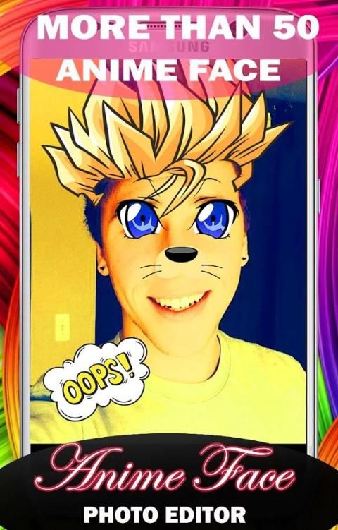 Тренажер для создания фото вас и превратить себя в аниме манга персонаж в картинке и добавить наклейки аниме манга к вашему лицу на фотографии и превратить его в удивительный аниме манга face.Pick до телефона на уровне человека к вашему лицу перед камера.