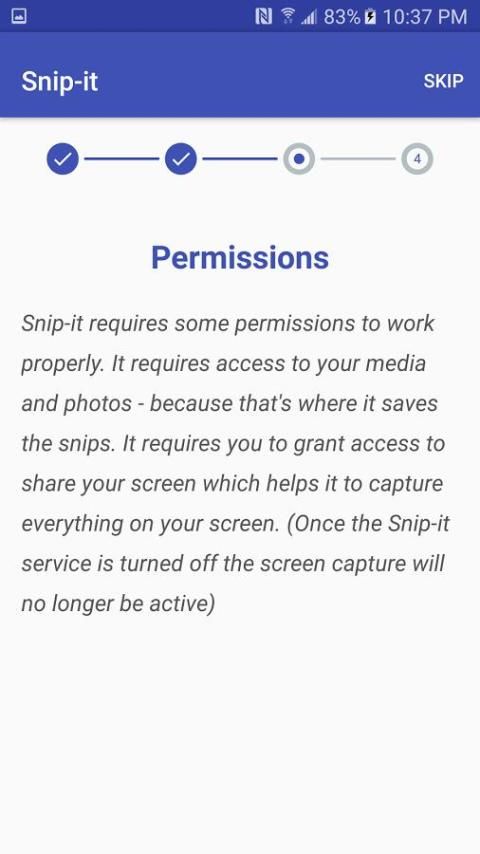 Надрез-он требует некоторых разрешений для правильной работы. Для этого требуется доступ к информации и фотографий - потому что это, где она сохраняет надрезы. Это требует от вас, чтобы предоставить доступ к общий доступ к экрану, который помогает ему захватить все на экране. (После того, как служба Надреза-он выключен захват экрана больше не будет быть активным).