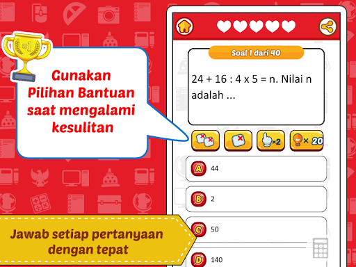 Экзамен ON SD 2023 - это образовательное заявление, которое содержит сборник национальных экзаменационных вопросов начальной школы.С этим приложением студенты могут практиковать работу над вопросами как для подготовки национального экзамена или УНА.Это приложение оснащено интересной интерактивной игрой, чтобы дети могли учиться весело.Все вопросы были заданы командой добровольцев в начальной школе в Solite Kids, которая приспособлена к учебной программе в BSE (электронная школа) из Министерства образования и культуры.