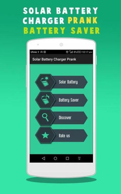 Приложение Solar Charger Prank теперь добавлено с Battery Saver, что продлевает срок службы батареи, останавливая приложения и увеличивая скорость зарядки. Приложение App Store также содержит режим энергосбережения, который показывает режим General, длительный режим ожидания, спящий режим, пользовательский режим в соответствии с требованием выбрать Другой режим энергосбережения. App также показывает состояния батареи для состояния тока, температуры, напряжения и времени работы от батареи. Он также контролирует все приложения, которые истощают энергию, когда они не используются, и напоминают пользователю о приложениях с высоким уровнем потребления. Указывает, сколько энергии будет увеличено при использовании.