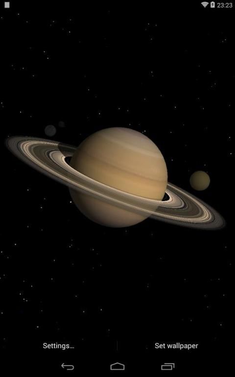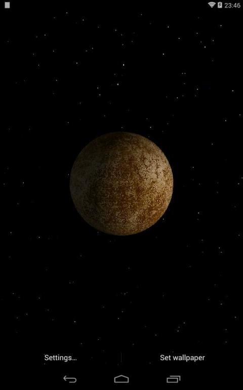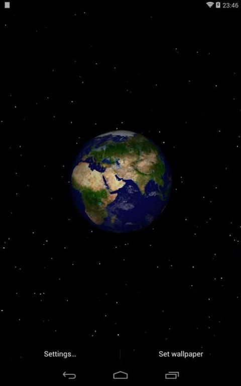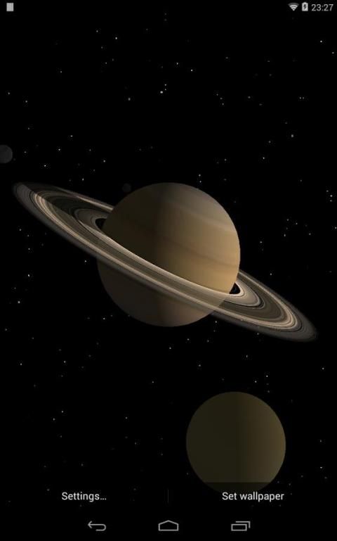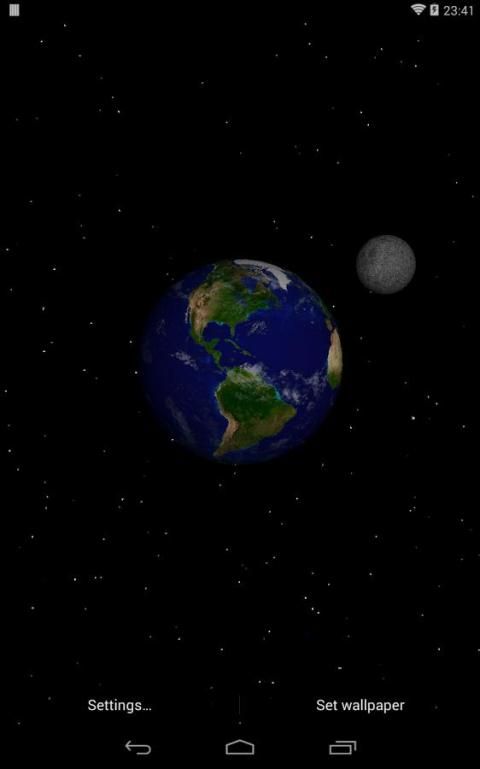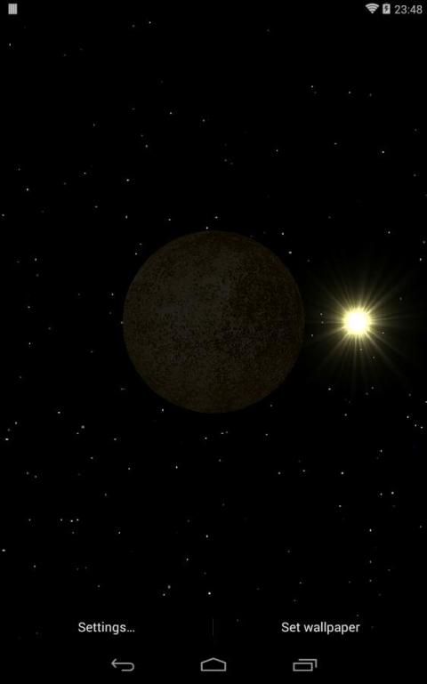This is a 3D space live wallpaper of the Solar System that shows each planet spinning around its axis and, if enabled, the relative motion of the Sun. It includes realistic textures for planets, their satellites and (moving) clouds for Earth. The scene is completed by a beautiful background of stars.