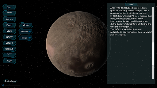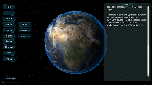 Это приложение также содержит информацию, предоставляющую Aphelion, Perihelion, Semi-major Axis, Eccentricity, Orbital period, Средняя орбитальная скорость, Средняя аномалия, Наклонение, Долгота восходящего узла, Аргумент перигелия и многое другое о звездах, планетах и спутниках в нашем Солнечная система.