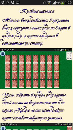 В этом приложении мы предлагаем вам один старинный пасьянс - антистресс. он приятный, несложный и увлекательный.