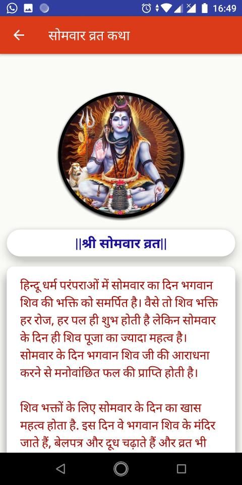 This app is dedicated to all the devotee of lord Shiva. In this application, the devotees have been given the complete story of SOMWAR VRATH KATHA. In this application, the devotees have been informed about Monday fast or have been informed about the significance and method of the Monday fast. Chalisa and Aarti have been provided in this application along with story of SOMWAR VRATH.