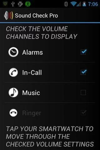 Найти SoundCheckPro, если вы хотите, чтобы изменить громкость Android устройства от подключенного вашего SmartWatch аксессуар.