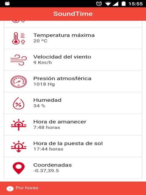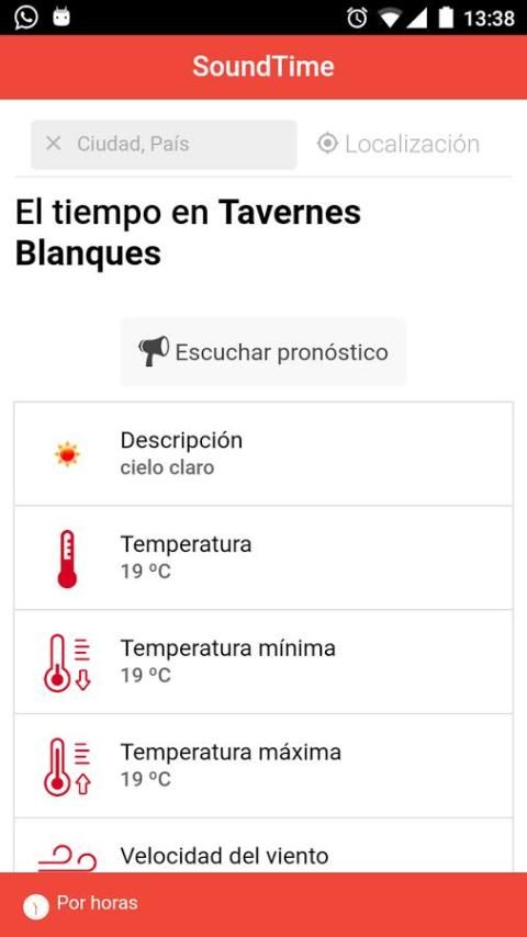 Звук Погода дает вам текущие погодные условия на первый взгляд, а также прогноз Подробный благодаря геолокации системе. И если вы не хотите читать, не беспокойтесь, потому что звук Погода также позволяет прослушивать все информационные благодаря своему голосу.