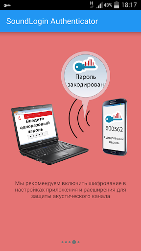 SoundLogin – это технология, упрощающая взаимодействие пользователя с двухфакторной системой аутентификации. Коды подтверждения, сгенерированные приложением или полученные на телефон по SMS, кодируются и передаются с помощью звука в браузер, где автоматически вводятся в форму на сайте.