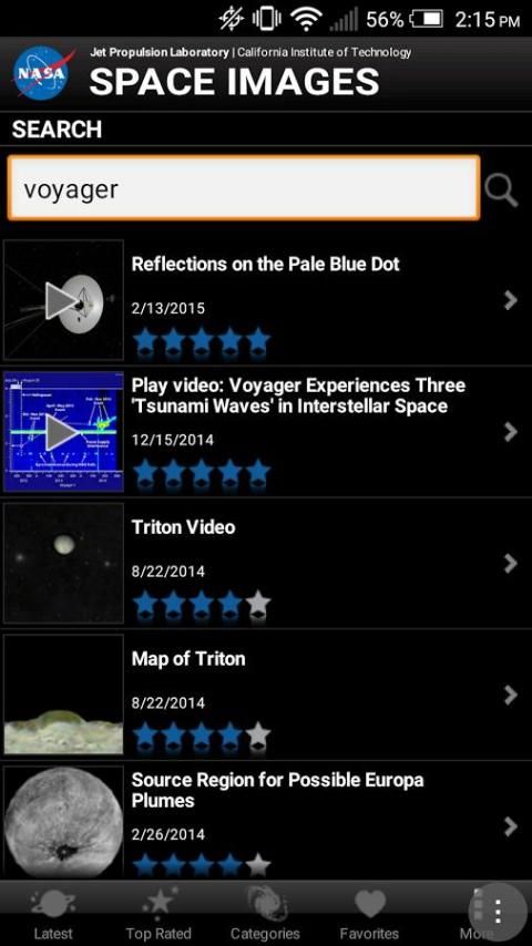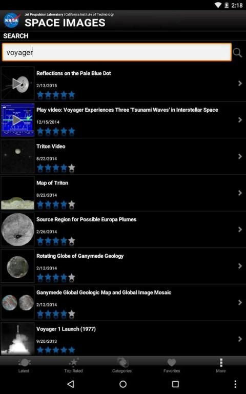 Откройте для себя потрясающие изображения и видео пространства, звезд и планет - в том числе Земли и Солнца! - На кончиках ваших пальцев с космических снимков приложение от реактивного движения НАСА в Лаборатории, лидер в роботизированной исследования Солнечной системы.