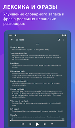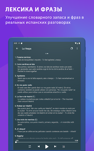 - одно из наиболее образовательных приложений для тех, кто хочет легко выучить испанский язык. Испанский Изучение Приложения включает в себя удивительные разговоры по испанскому языку и уроки испанского языка, так что пользователи могут учиться у наивных испаноговорящих и свободно говорить по-испански.