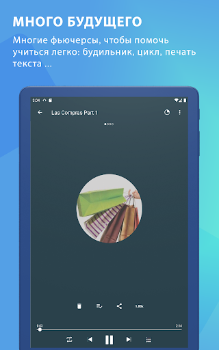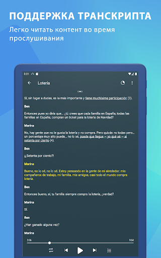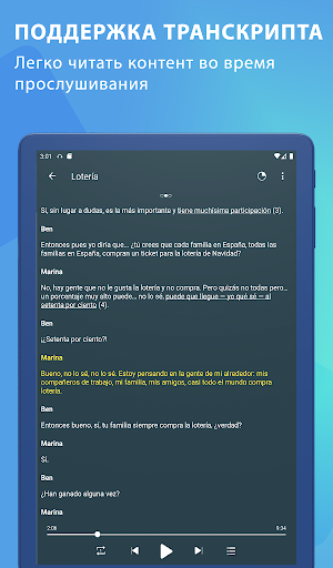 Каждый подкаст - это урок испанского языка, посвященный таким темам, как праздники, покупки, футбол, покупки и деньги, ...
